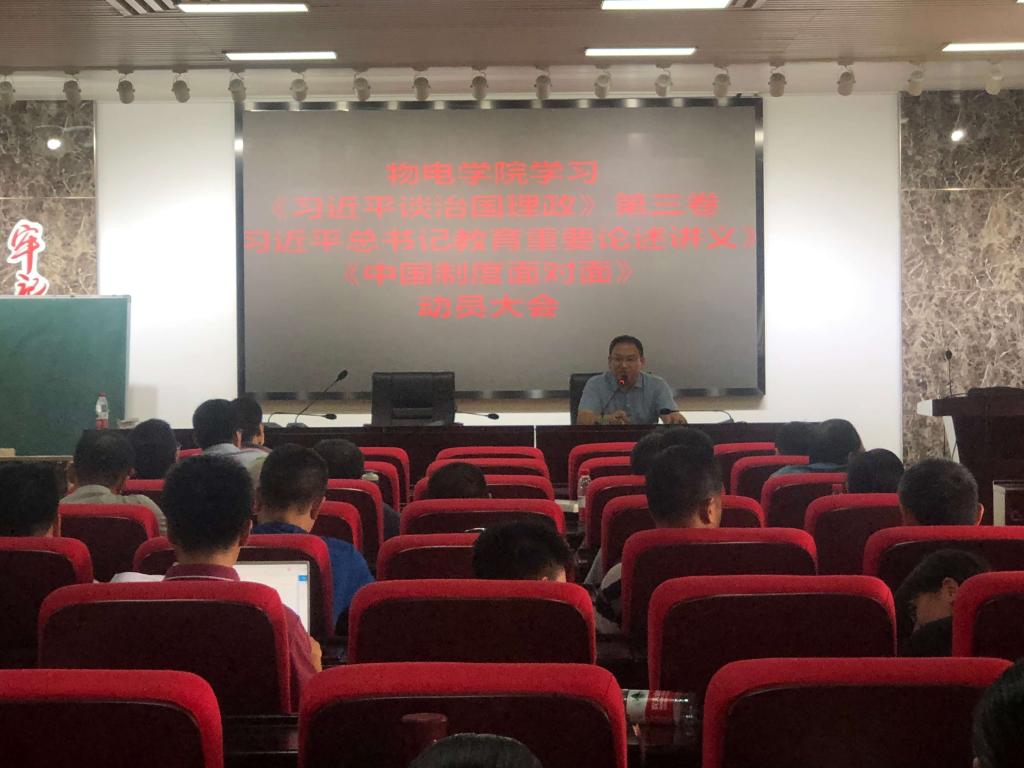 会议传达了学校关于组织开展学习宣传《习近平谈治国理政》第三卷、《习近平总书记教育重要论述讲义》和《中国制度面对面》的通知精神,并就学院制订的《学习活动方案》进行了宣讲。