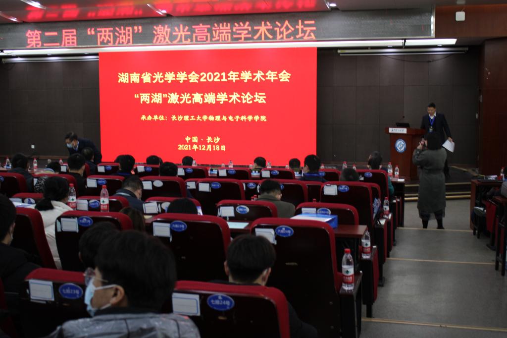2021年12月18日-19日,湖南省光学学会2021年学术年会暨第二届“两湖”激光高端学术论坛在我校国际交流中心成功举行,活动由我校物理与电子科学学院承办。刘朝晖副校长代表学校在大会开幕式上致辞,欢迎来自湖南湖北两地光学领域的专家学者莅临我校,并向大会的召开表示热烈祝贺。刘朝晖副校长指出,物电学院承办本次年会,是专家对学院光电信息科学与工程专业及电子学科的厚爱和支持,将极大地促进我校光电领域的科学研究和人才培养,有力地促进地方区域科技的合作交流与发展,扩大学校在该领域的国内国际影响力。他希望物理与电子科学学院师生珍惜机遇,充分借鉴吸收年会的交流成果,进一步推进我校光电学科的建设发展。