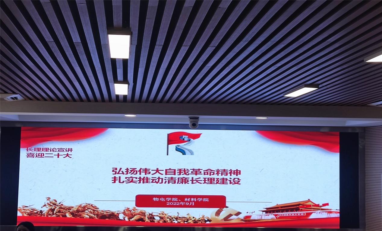 为推进全面从严治党向基层一线延伸,将“清廉长理”建设融入学校发展的全过程各方面,为决胜建成“百强”大学营造风清气正的良好环境。9月27日下午,物电学院、材料学院教职工齐聚理科楼A200报告厅,聆听关于加强全面从严治党的专题宣讲。