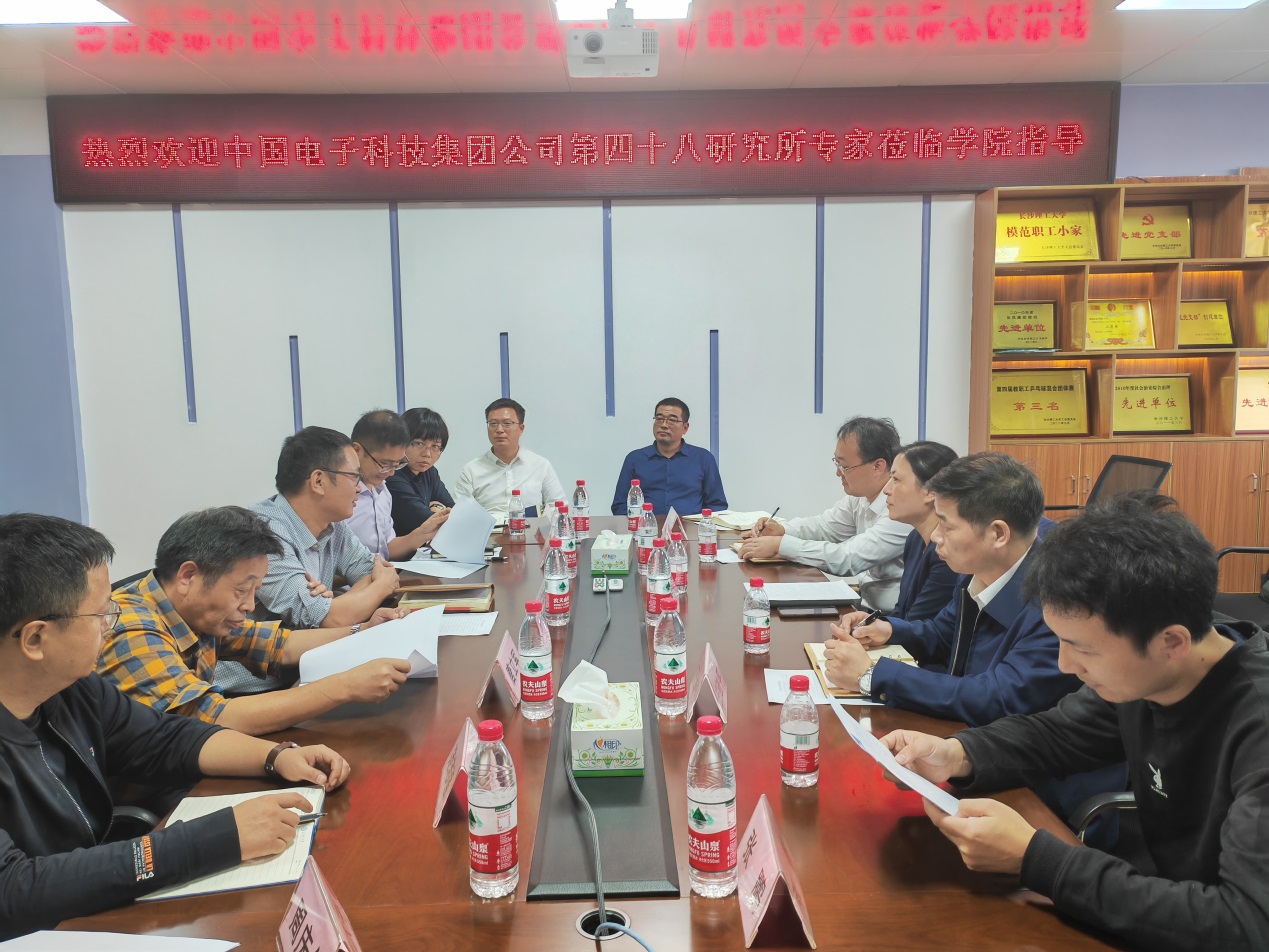 2022年10月21日下午,中国电子科技集团公司第48所人事处处长欧利平一行来2025年新澳门原料网站物电学院调研交流,学院党委书记张国强、副院长张卫兵、范志强、刘斯,唐立军教授、周庆华教授、鲁耿彪副教授、文勇军老师等参加了座谈交流。