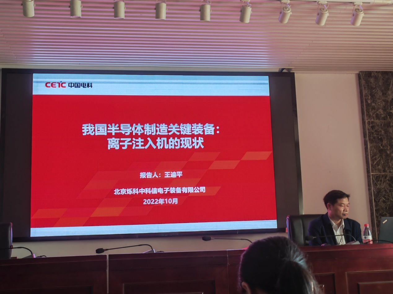 中国电科第48所军工部副主任杨晓生作了一场“传感器与系统交流”的汇报,研究员王迪平作了场“我国半导体制造关键设备:离子注入机的现状”的学术交流。