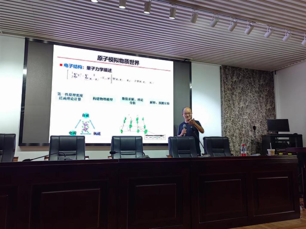钟志诚研究员长期从事磁性材料的理论计算研究,重点关注关联电子磁性材料体系,如含d 电子的过渡金属氧化物、含f 电子的稀土磁性材料,探索材料表界面的关联电子磁性新物态;精通并融合了多种磁性相关的理论计算方法,包括第一性原理密度泛函理论、瓦尼尔投影、动态平均场理论、输运理论、自旋-电荷涨落理论、以及基于机器学习的深度势能方法等。报告中, 钟志诚研究员介绍了他们课题组近期在基于深度学习的大尺度原子结构模拟计算领域的一些研究进展。讲座取得良好效果。