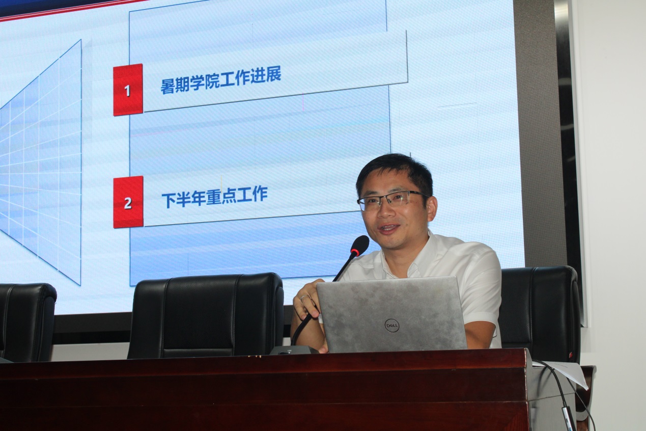 接着张卫兵副院长汇报了暑假工作进展,对于大家在暑假期间的默默奉献工作表示感谢和肯定;然后通报了学院的下半年的重点工作,并鼓励教职工激发潜能,攻坚克难,团结奋斗,跨越发展,在新的学期作出更大的贡献。