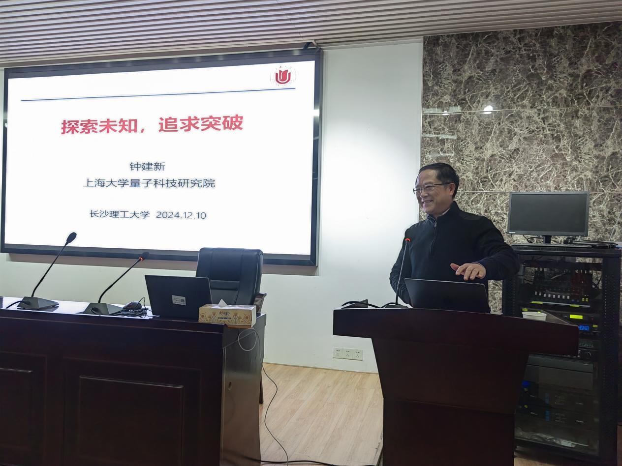 2024年12月10日下午,我校荣幸地邀请到上海大学量子科技研究院钟建新教授进行学术交流。钟教授在理科楼B413会议室为我校师生带来了题为《探索未知,追求突破》的学术报告,我校教师及研究生积极参加了此次学术报告会。会议由邓科教授主持。