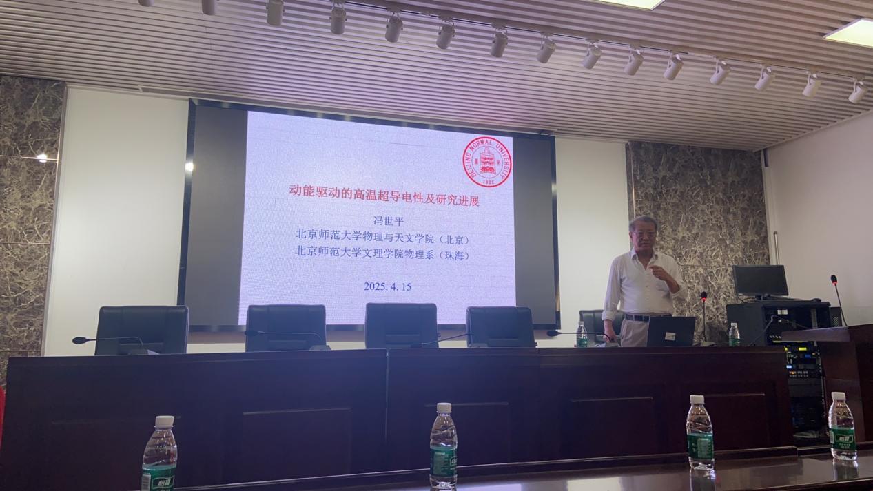 2025年4月15日下午,北京师范大学冯世平教授应邀来我校交流指导,在理科楼B413会议室作了题为《动能驱动的高温超导电性及研究进展》的学术报告。我院师生积极参加了此次学术报告会,会议由张卫兵教授主持。