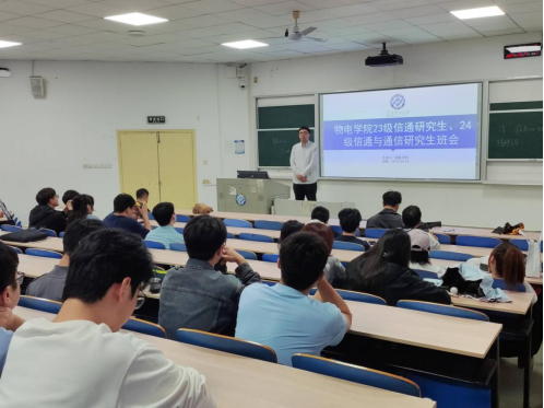 2025年9月24日下午,物电学院在6教学楼208教室召开通信类研究生班会,参会人员涵盖23级通信专业研究生及24级通信与信通专业研究生。本次班会由学院辅导员姚巍主持,核心围绕通信工程专业研究生整体转入物电学院的工作开展需要,系统推进班级组织建设及后续工作部署,为专业转入后的教学管理衔接与学生发展筑牢根基。