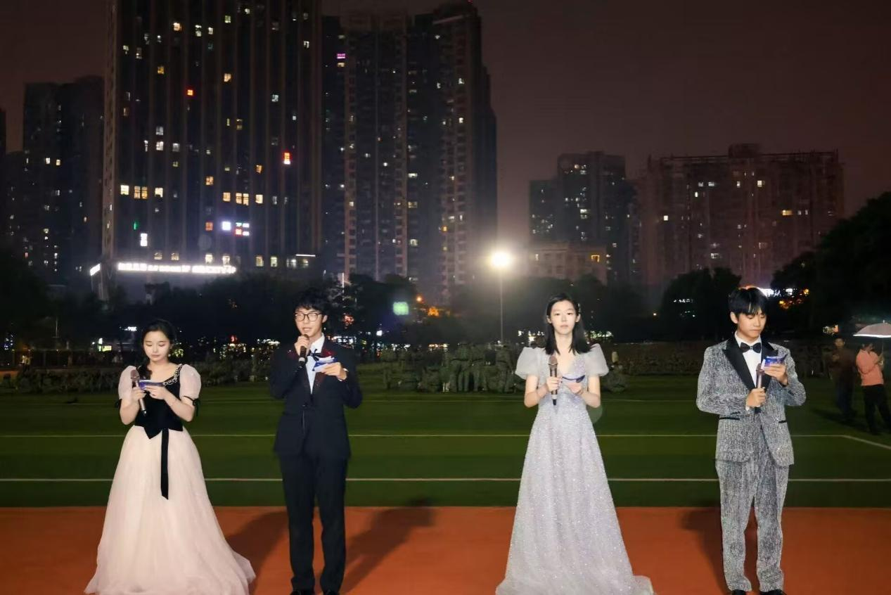 在全体演员与工作人员的共同努力下,晚会圆满落幕。主持人以“少年不负戎装梦,砥初心,筑荣光”致敬军训时光,并寄语新生以坚韧意志书写大学新篇章。此次联谊晚会不仅丰富了军训期间的文化生活,更强化了学院间的交流互动,同时,物电学院团委学生会刘祎宸学长向新生介绍团委学生会各部门,为2025级新生的大学生活留下璀璨而温暖的初印象。