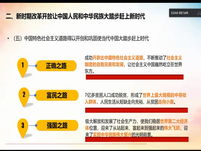 易显飞教授的堂课十分精彩,同学们全神贯注、认真听讲、记笔记。通过这次党课学习,同志们了解到党的光荣传统、宝贵经验和伟大成就,进一步认识到中国从站起来富起来到强起来的艰辛探索和历史必然,理解了共产党人的初心和使命,永远感党恩、听党话、跟党走,努力奋斗,争取在不远的将来创造出更多更辉煌的成绩。