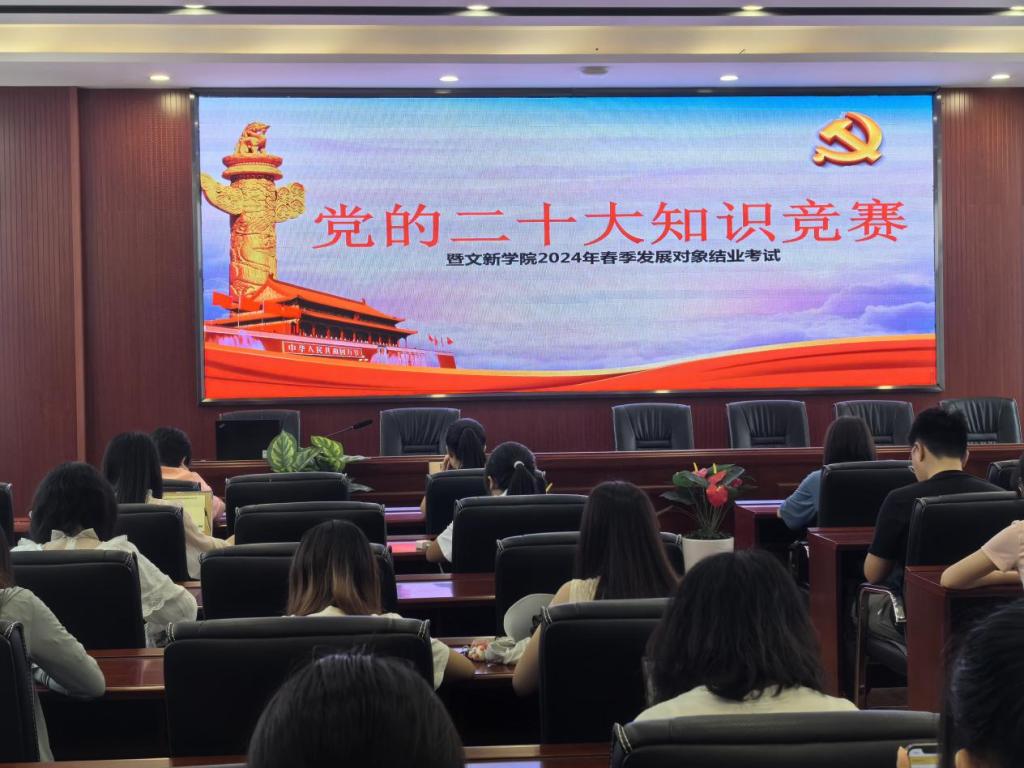 为贯彻落实党的二十大精神,积极探索“党建+互联网”新模式,进一步提升发展对象的理论知识水平,5月21日12时,“党的二十大知识竞赛暨文新学院2024年春季发展对象结业考试”于我校金盆岭校区九号教学楼218室成功举行。