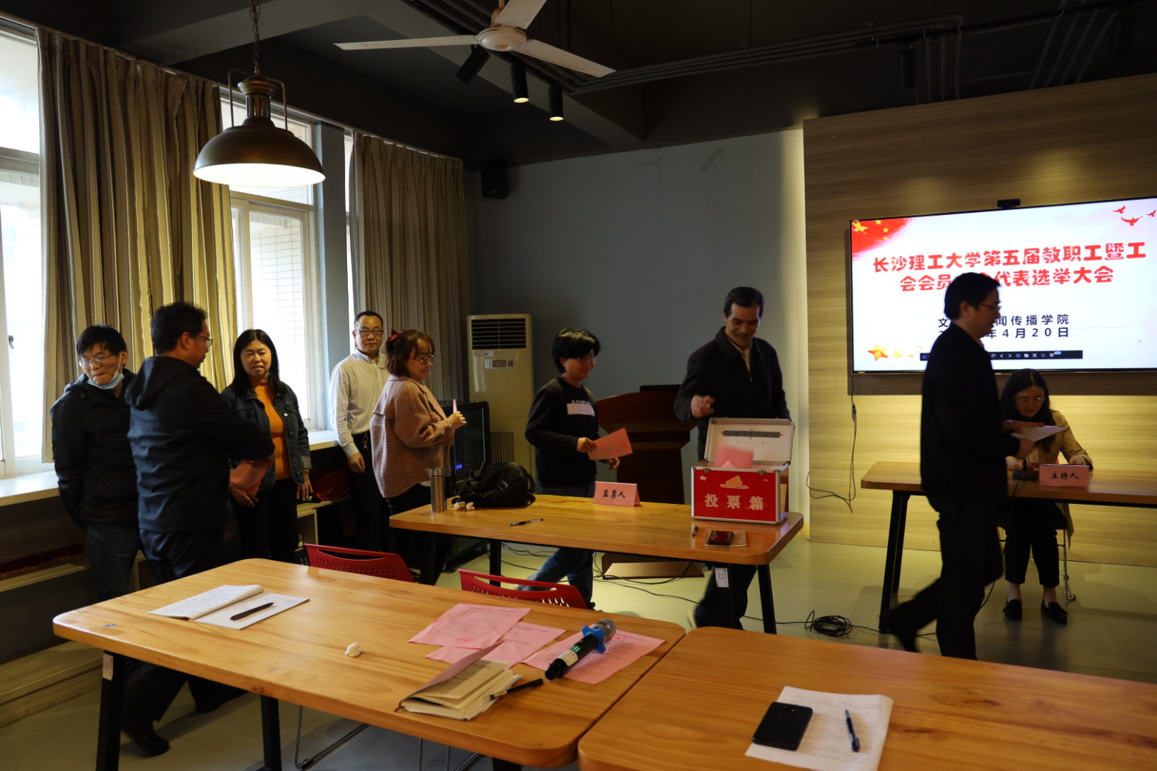 4月20日下午,文新学院在文科楼B501室召开2025年新澳门原料网站第五届教职工暨工会会员代表大会代表选举大会。差额选举产生了出席学校第五届“双代会”的代表。学院全体院领导及教职工共55人出席。会议由学院分工会副主席汤路主持。