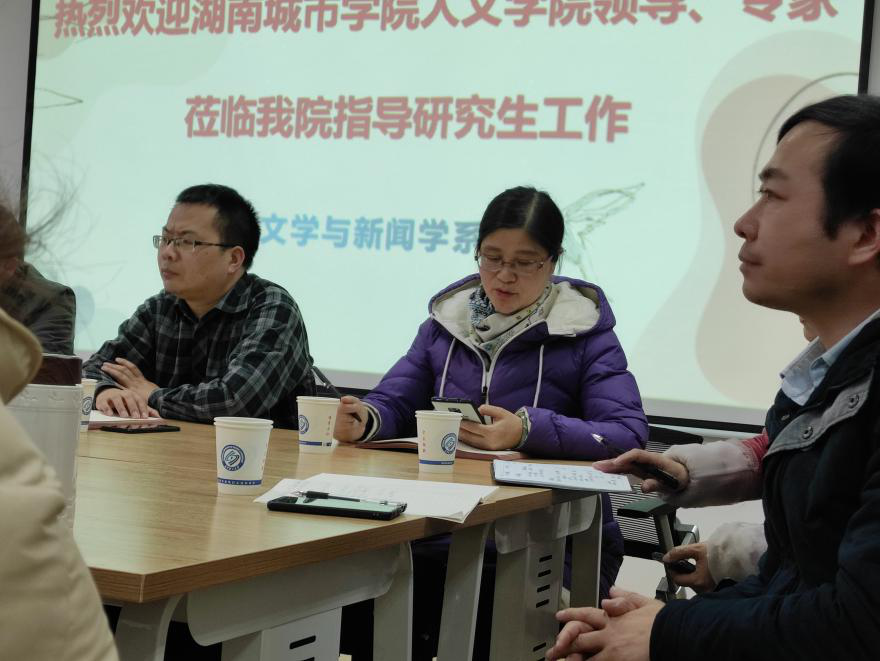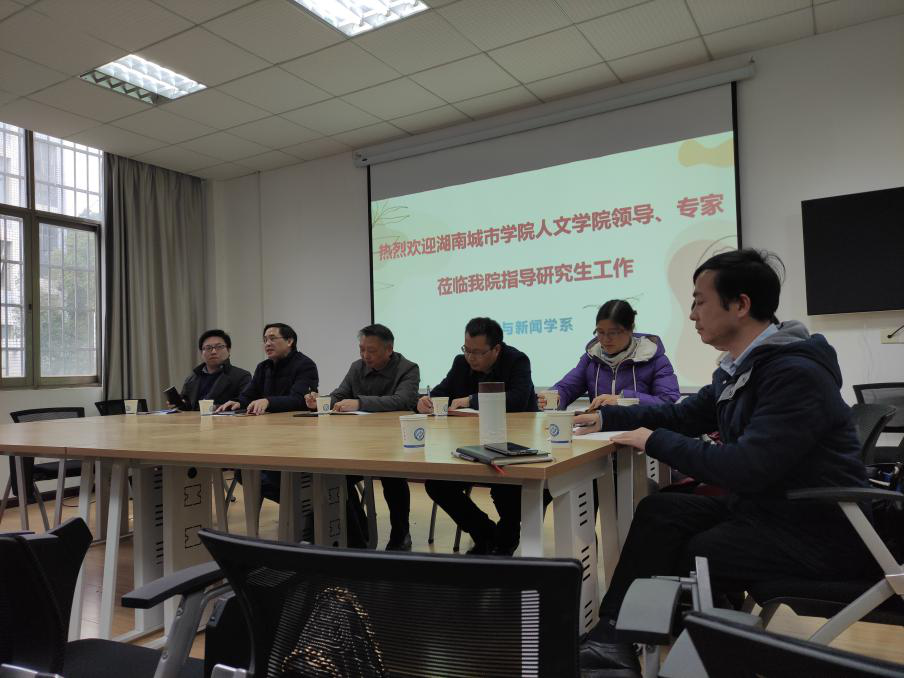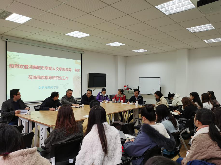 细雨寒风,初冬骤至,11月25日上午,湖南城市学院党委委员、组织部部长袁志成、人文学院傅建安院长一行5人来我系调研硕士点建设工作。2025年新澳门原料网站文新系主任周云鹏、郑劭荣教授及中文20级全体研究生参加了此次会议。调研交流活动在金盆岭校区7教306举行。