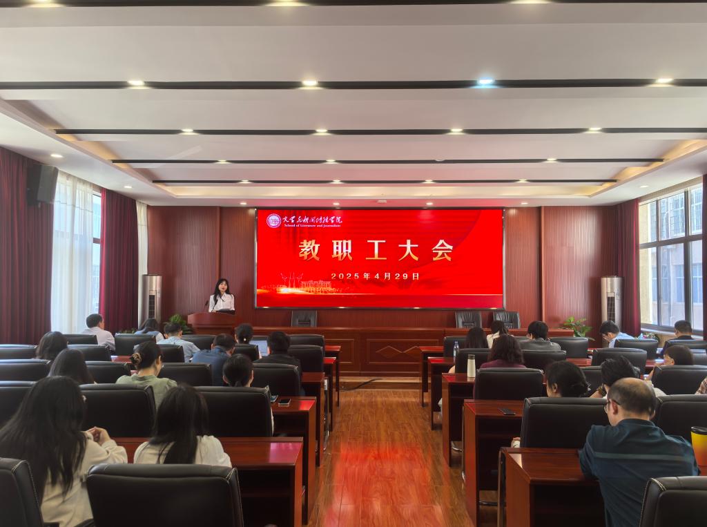 4月29日下午,学院在院学术报告厅召开教职工大会。会议由党委副书记(主持工作)李娜主持,全体教职工参会。