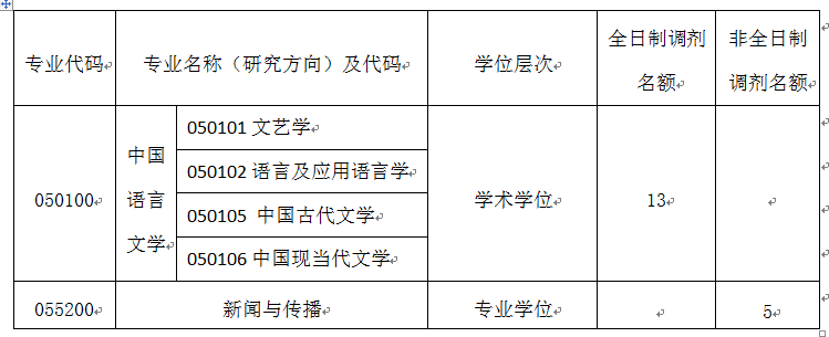 根据2021年报考我院硕士研究生的考生成绩,我院学术型硕士点中国语言文学(全日制)、专业型硕士点新闻与传播(非全日制)尚有部分调剂指标。欢迎符合条件的考生申请调剂我院。