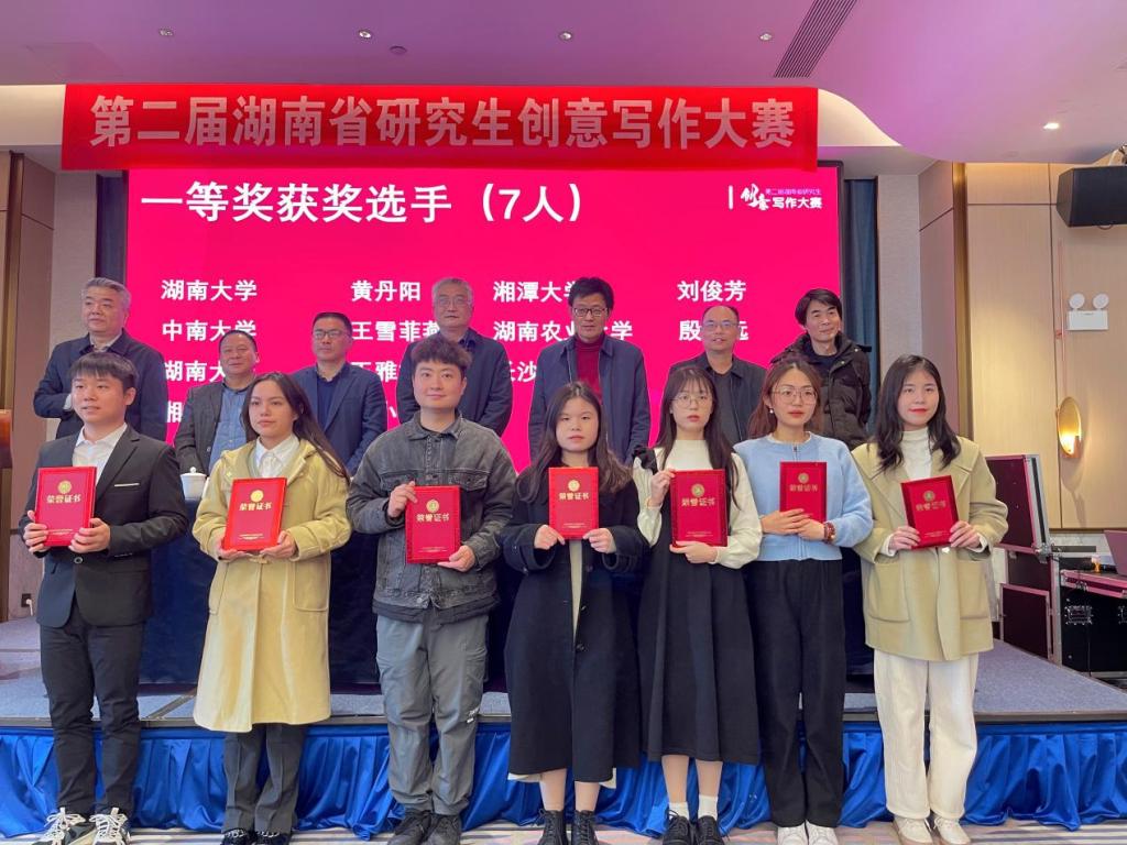 湖南省研究生创意写作竞赛系省内唯一的省级学科竞赛,在提升研究生的人文素质、审美能力和创新能力等方面均具有重要的引导和促进效应。我院5位同学在周云鹏老师的指导下,表现突出,为我校参加第二次研究生创意写作竞赛交上了满意的答卷,同时也为我校日后开展此类比赛进一步奠定活动基础,勾勒未来可期的耀眼图景!