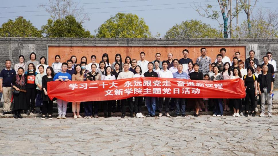 11月12日,文新学院在长沙县田汉文化园开展“学习二十大,永远跟党走,奋进新征程”主题党日活动,学院全体教职工参加了此次活动。