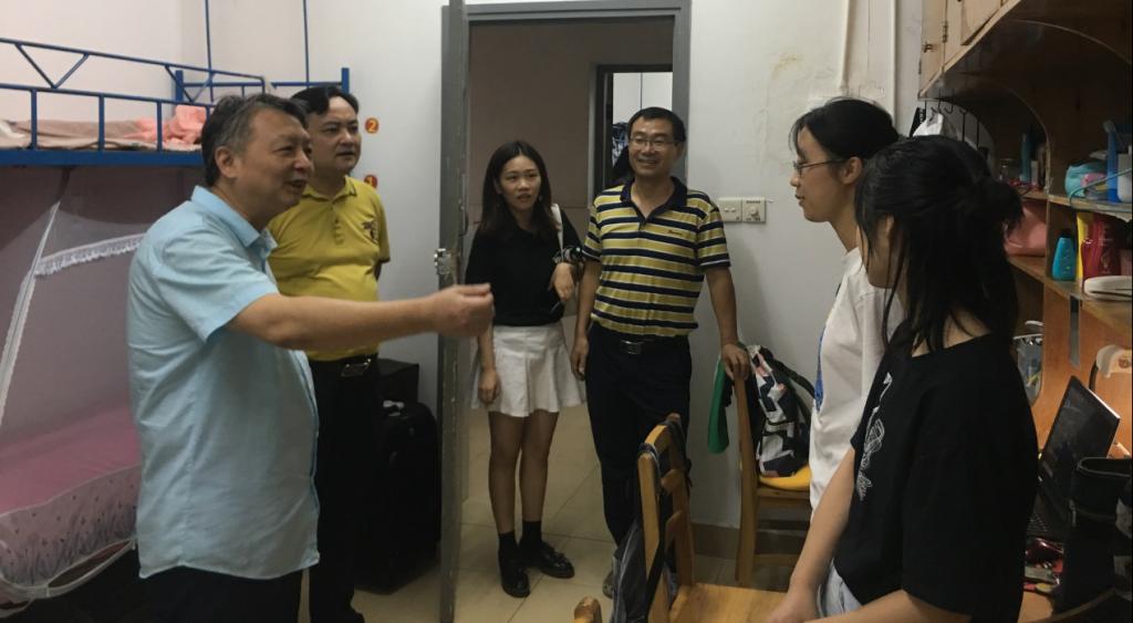 9月13日文新系2020级研究生来校报到,下午五点,为了解我系研究生新生住宿和生活情况,使新生更快的适应新生活新环境,文新系党总支书记伍接朝、文新系副主任周云鹏、魏桃初在辅导员李敏老师的陪同下,走入新生宿舍,关心慰问新生。