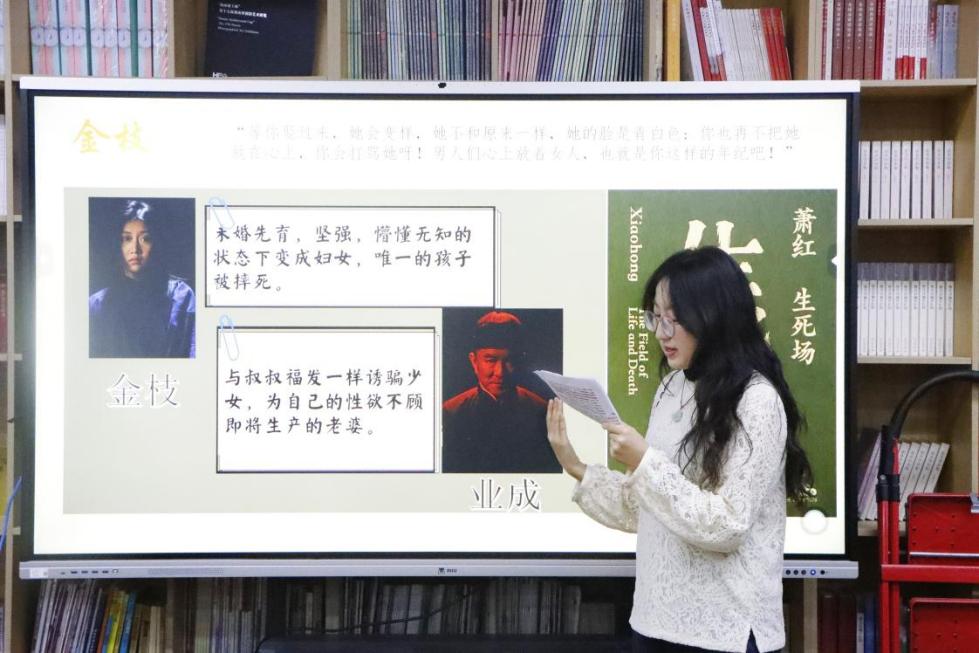 在分析女性角色的过程中,王紫瑞不断抛出问题,与同学产生积极的互动,现场氛围十分热烈。黄宇老师点评道:“相较于同时期的其他作品,萧红的《生死场》在表达上是一种创新,叙述并不连贯。将人动物化现象明显,体现出一种困境。同时不论是女人还是男人,都需要用物质来填满自己,是时代的需求。针对文中不幸的婚姻,还是希望同学们保持对爱情的憧憬,不能过于消极,体会经历也是一种收获。”