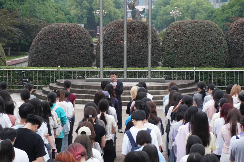 6月9日6:40,文学与新闻传播学院于金盆岭校区经管大楼前坪,隆重举行 “红旗映初心 青春践使命” 主题升旗仪式。24 级本科生辅导员项永生与全体 24 级学子迎着晨曦整齐列队,以庄严仪式厚植爱国情怀,以殷切嘱托筑牢学习与安全防线。