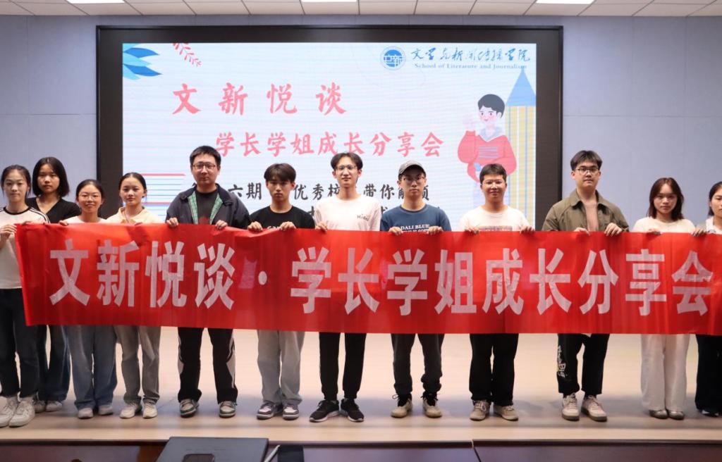 10月13日晚19:30,第十六期“文新悦谈・学长学姐成长分享会”在我校金盆岭校区九教113新闻演播厅成功举行。本次分享会特邀2025届优秀校友周晨阳主讲,围绕求职与成长主题分享实用“攻略”,共吸引文新学院142名学子参与,充分体现学院特色育人品牌的凝聚力与影响力。