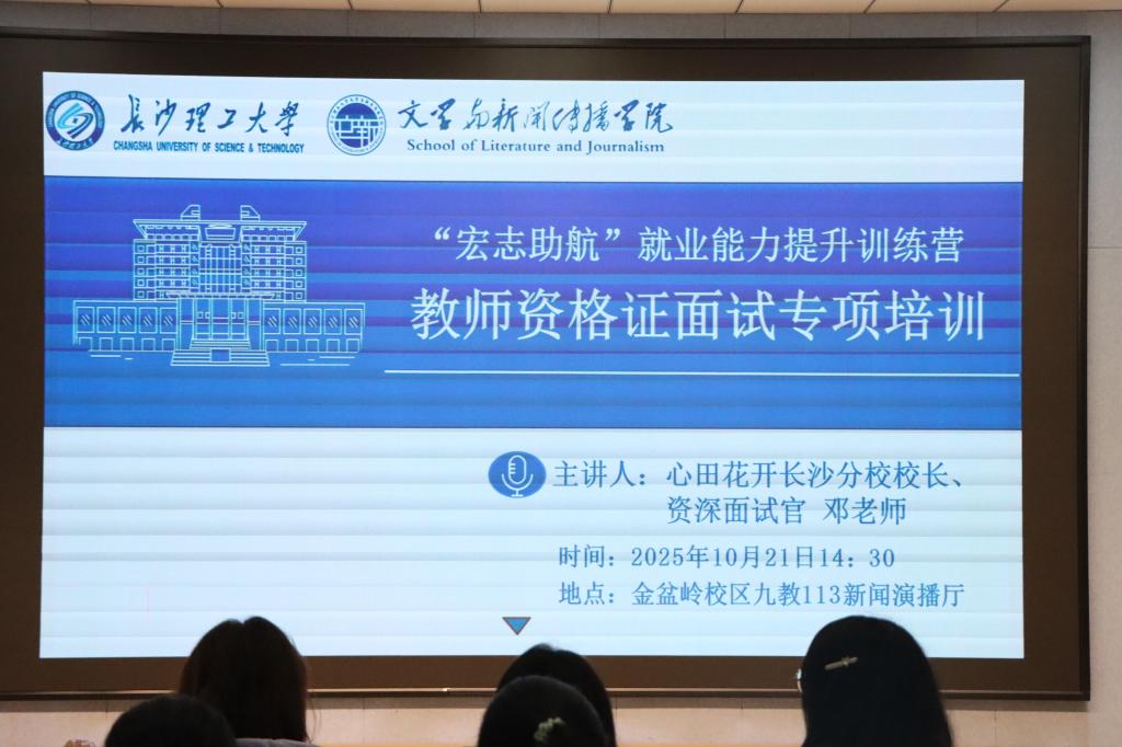10月21日下午14:30,2025年新澳门原料网站文学与新闻传播学院特邀心田花开长沙分校校长邓老师,于九教113新闻演播厅举办“教资面试通关秘籍:从考生到准教师”培训讲座,共139名学生参与活动。本次讲座通过多形式教学向文新学子分享面试技巧,送上教资通关“秘籍”。