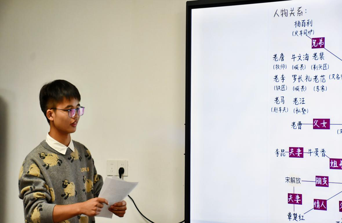 11月14日晚19:30,文新学院第三十六期“文新阅享·经典作品分享会”在金盆岭校区九教223团体成长辅导室顺利举办。本期活动由新媒体2401班邱项同学主讲,以“精神的孤独与困境——底层人民对一句顶一万句的渴望与追求”为主题,介绍了刘震云在2011年荣获茅盾文学奖的作品《一句顶一万句》。中文系黄宇老师以及24级辅导员项永生老师作为本次分享会的特邀嘉宾参与活动。