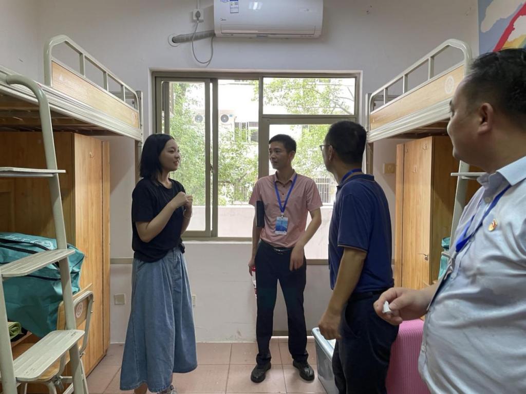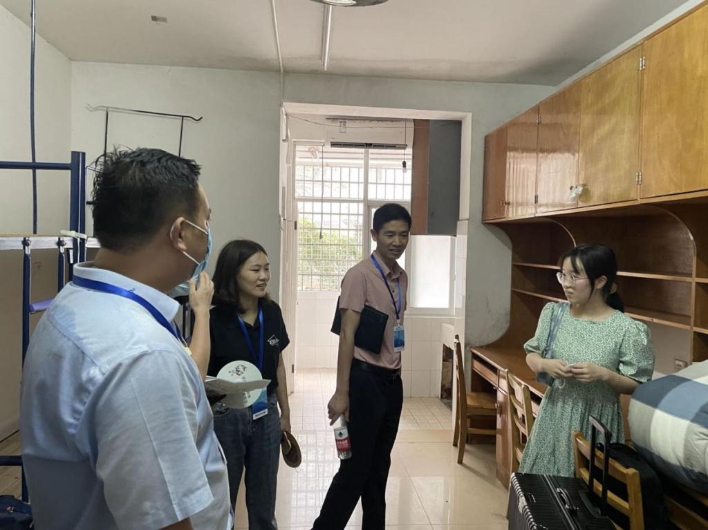 96日,2021级新生满怀着期待与热情开启了他们新生活的第一天。上午10点,我院党委书记伍接朝、院长刘建新、院党委副书记刘莎、副院长魏桃初在辅导员李敏老师的陪同下,来到金盆岭校区走访新生寝室,与2021级本科生与研究生亲切交谈。