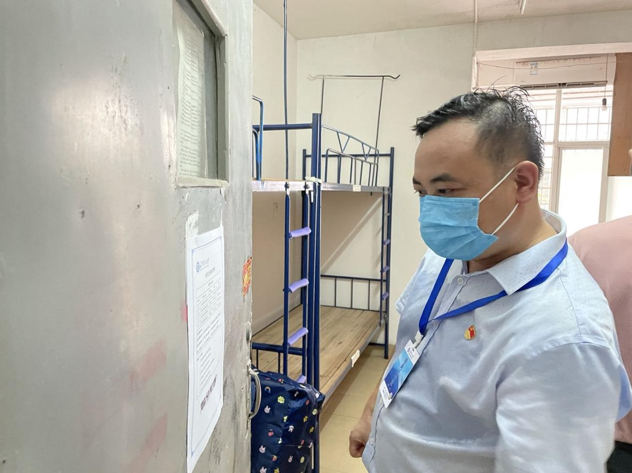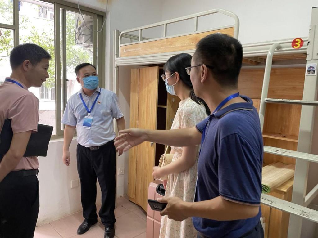 “家住在哪里?住宿条件还满意吗?空调能不能使用?学校的环境是否能够适应?”在一名新闻专业的本科生寝室里,伍书记详细地询问了新生情况,认真检查了寝室卫生,并关切地表示如果遇到生活、学习上的问题都可以随时向老师咨询。