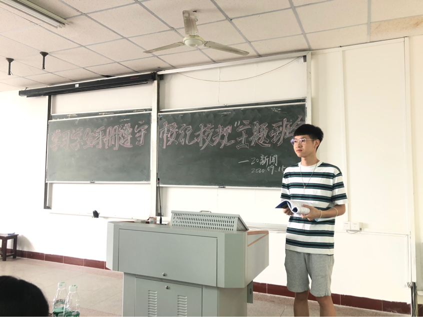 9月15日上午,20级新闻与传播研究生新生在第四教学楼510教室举行“学习学生手册遵守校纪校规”主题班会,班长聂伟主持本次班会。