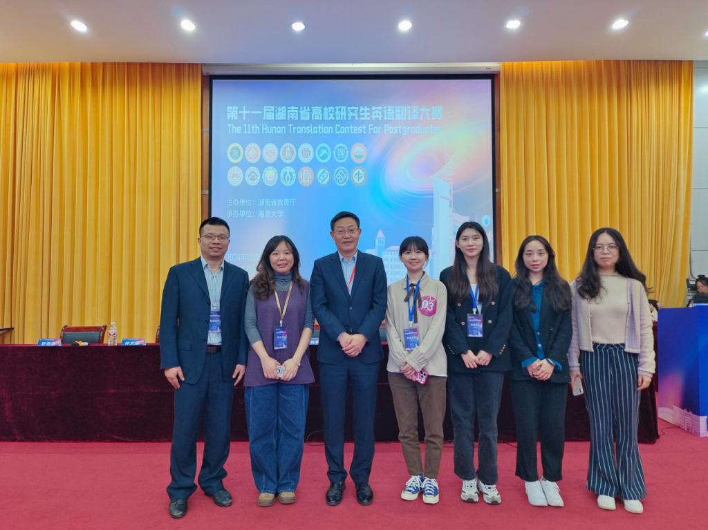 2024年11月8日至9日,第十一届湖南省高校研究生英语翻译大赛在湘潭成功举行。本届翻译大赛由湖南省教育厅主办,湘潭大学承办,全省16所高校共150名选手参加了比赛。经过激烈的角逐,最终我校代表队获得以下成绩:23级外国语言文学蔡文远获口译组二等奖,23级英语笔译钟爽获口译组三等奖24级英语笔译曾路获口译组三等奖,23级英语笔译彭依梦获笔译组三等奖,23级英语笔译段霖获笔译组三等奖。其中口译组创造我校参加此项比赛来的突破性最好成绩。