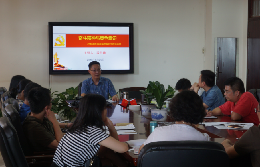 6月26日下午在文科楼学院会议室,段胜峰院长以 “奋斗精神和竞争意识”为主题召开了学院干部培训会。参加人员包括学院领导班子、各行政办公室负责人、各系部正副主任、支部书记、教学指导委员会成员、教授委员会成员、学位分委员会成员。