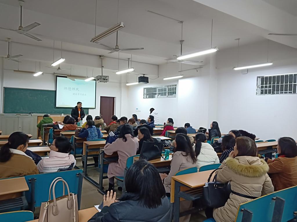 2018年12月25日,公共外语基础部在云塘文科楼A403集中学习了《师德师风建设学习读本》。学习分两个阶段进行。第一个阶段集中学习习近平总书记关于师德师风的讲话、新时代高校教师职业行为十项准则以及优秀师德师风的典型事迹。习近平总书记在北京师范大学师生代表座谈时的讲话中提到了好老师应当具备的一些品质:要有理想信念,要有道德情操,要有扎实学识,还要有仁爱之心,要尊重学生,理解学生。新时代对广大教师落实立德树人根本任务提出了新的更高要求,进一步增强了教师的责任感、使命感、荣誉感,规范了职业行为,明确了师德底线。