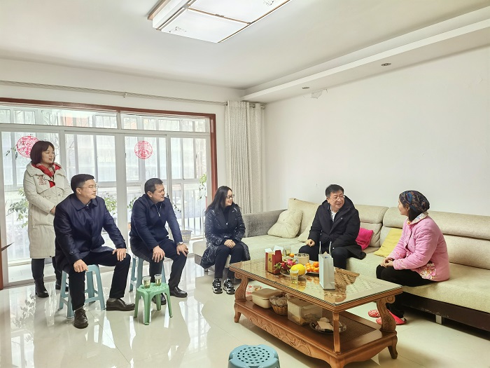 2024年1月25日上午,校党委书记付宏渊来到我院重病在家休养的袁莉老师家中进行走访慰问,校党委组织部部长陈曦、党政办主任庄创奇随行,我院党委书记文丽丽陪同走访。