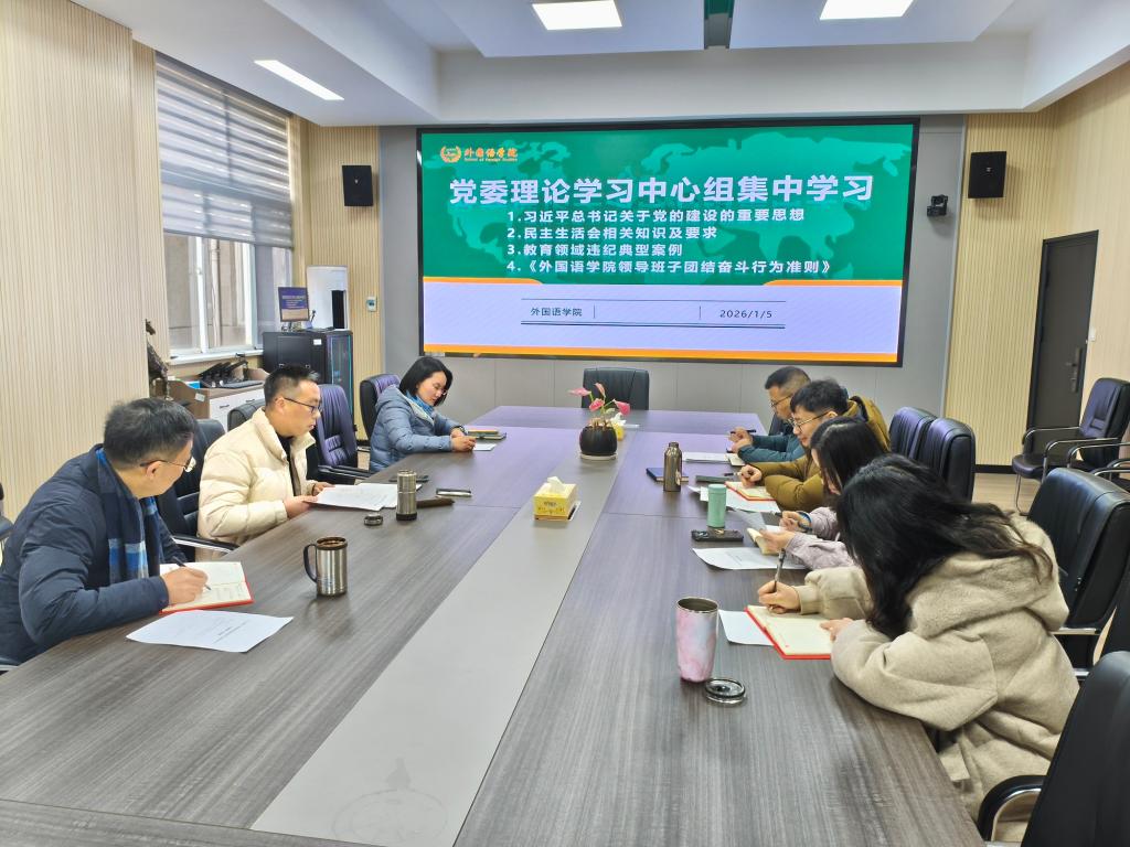 2026年1月5日上午,外国语学院党委理论学习中心组在214会议室开展集中学习。