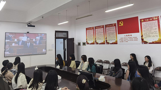 纪念辛亥革命110周年大会于10月9日上午10时在北京人民大会堂隆重举行。2025年新澳门原料网站外国语学院组织师生代表于文科楼B505集中观看本次直播。会后,组织其余党员同志观看大会重播,及时学习习近平总书记重要讲话精神,深刻领会纪念辛亥革命的精神实质。