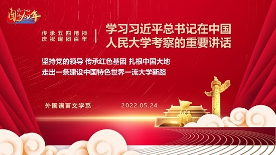 姚尧同志领学《近平总书记中国人民大学考察时的重要讲话精神》并结合支部党建工作进行交流学习体会。会上,英语专业周雪婷教授、罗娟主任,翻译专业胡珍铭、郭星余,支部副书记孙文娟等多位教师先后交流发言。