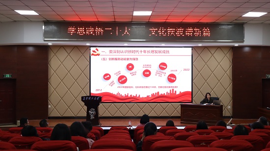 44日下午在云塘校区文科楼A-200学术报告厅,学院举办一场理论宣讲会。主讲人为学校党委委员、宣传部部长方琼,会议由学院党委书记文丽丽主持,学院全体教职工参加
