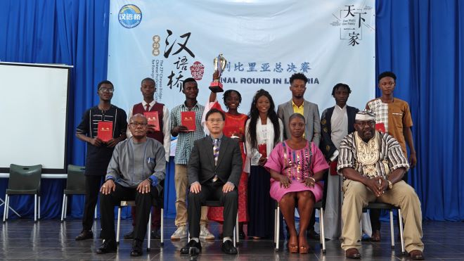 在一片欢乐与祥和的氛围中,第23届“汉语桥”世界大学生中文比赛预选赛利比里亚赛区总决赛圆满落幕。这次比赛不仅展示了利比里亚大学生学习汉语的热情和才华,也促进了中利两国之间的文化交流与互鉴。