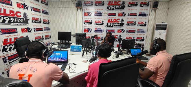 2024年9月7日,利比里亚国家广播电台迎来了全新改版的“空中汉语”栏目的首次亮相。在我国驻利比里亚使馆的支持和指导下,利比里亚大学孔子学院的“空中汉语”栏目自开播以来,赢得了利比里亚民众的广泛认可与好评。为进一步提升栏目质量,扩大中文及中国文化的影响力,利大孔院精心策划了此次改版升级,栏目的播出时间变更为全年每周六一个半小时;除了以往的广播形式,还创新性地引入了国家电视台在Facebook平台的同步直播,让利比里亚更多民众能够轻松接触并深入了解中文和中国文化。