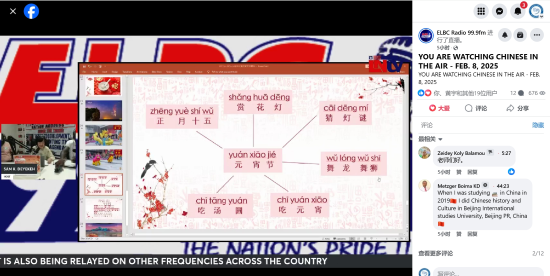 当地时间2025年2月8日上午,利比里亚大学孔子学院在利比里亚国家广播电台《空中汉语》栏目播出了2025年元宵节专题节目,为利大孔院新春系列活动画上了完美的句号。该节目还通过利比里亚国家广播电台官方脸书页面(ELBC FM99.9)进行了同步直播,吸引了大量观众的参与。