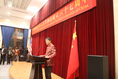 当地时间2016年9月28日晚7点,中国驻利大使馆隆重举办“庆祝中华人民共和国成立六十七周年”国庆招待会。中国驻利大使张越、利比里亚副总统博阿凯(Joseph N. Boakai)、中国驻利参赞、武官、利政府各部门部长出席了招待会。孔子学院教师和其他援利机构、中资企业代表应邀参加。
