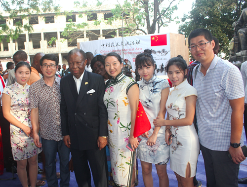 活动结束后,张越大使、利比里亚大学丹尼斯校长与孔子学院黄柏青院长及师生进行了亲切交流。张越大使对此次利比里亚大学孔子学院的承办的中利两国武术交流大型文化活动给予了高度肯定,对孔子学院师生为武术交流活动所做的大量工作表示感谢,并期望孔子学院日后能在利比里亚产生更大的影响,希望有更多的人来孔院学中文。利比里亚大学丹尼斯校长对孔院所做的武术交流活动工作表示赞赏,并号召更多的利比里亚青年加入孔子学院,加入到学习汉语的队伍当中。