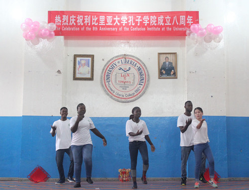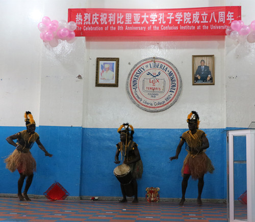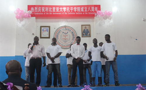 当地时间1月13日15时,利比里亚大学孔子学院成立八周年庆典活动在利比里亚大学礼堂隆重举行。中国驻利比里亚大使馆李壮代办,利比里亚教育部副部长博瓦德·比利亚(Gbovadeh Gbilia, Deputy Minister for Planning)、外交部副部长祖奥(Hon. Mr. Dehpue Zuo, Deputy Minister for International Cooperation and Economic)、移民总局副局长赞赞(Peter Forkpayea Zogolee Zaizay, Duputy Immigration Commissioner for Administration)、警察总局副局长亚伯拉罕·科罗马(Hon. Abraham S. Kromah, Deputy Inspector General of Police/ OPS)及其他利比里亚政府官员、利比里亚大学诸位校领导、联利团中国维和部队各单位首长、援利机构和中资企业代表和利大师生等六百余人参加了活动。利比里亚各大主流媒体和中国国际广播电台均赴现场采访报道。