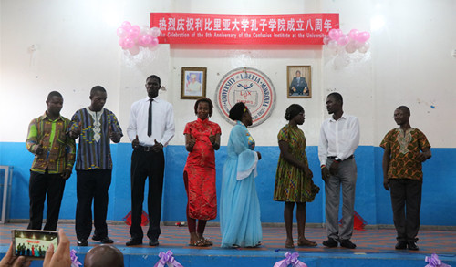 中国驻利比里亚大使馆李壮代办在致辞中对孔子学院过去八年来的工作表示充分肯定,尤其对孔子学院通过各种形式的汉语教学和文化交流活动,开展中利民间文化友好交流深表赞赏,并指出这种双向的沟通和交流,能够有利于利比里亚人民更好地了解中国,也使得更多的中国人更好地了解利比里亚!并祝愿利比里亚孔院的明天会更美好!