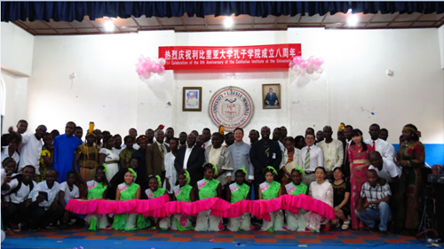 1月13日15时,利比里亚大学孔子学院成立八周年庆典在利大礼堂隆重举行。现场高朋满座,盛况空前。中国驻利大使馆李壮代办、利比里亚教育部副部长博瓦德·比利亚(Gbovadeh Gbilia)、外交部副部长祖奥(Hon. Mr. Dehpue Zuo)、移民总局副局长赞赞(Peter Forkpayea Zogolee Zaizay)、警察总局副局长亚伯拉罕·科罗马(Hon. Abraham S. Kromah)及其他利比里亚政府官员、利比里亚大学诸位校领导、联利团中国维和部队各单位首长、援利机构和中资企业代表和利大师生等逾六百人参加了活动。利比里亚各大主流媒体和中国国际广播电台均赴现场采访报道。
