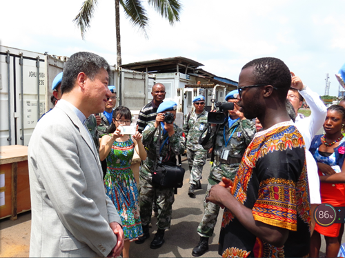 在机场,张越大使致辞,对远离故土远赴维和战场的勇士们表达了感谢之情——“你们留下的是和平与安定,带走的是荣耀与自豪”,同时充分肯定了十四年来中国驻利维和部队的工作成果。张越大使同时指出,维和不是目的,使维和的国家尽早回归和平与稳定才是真正的目的。联合国对赴利维和部队的有计划撤离,标志着利比里亚进入了全新的和平发展阶段。