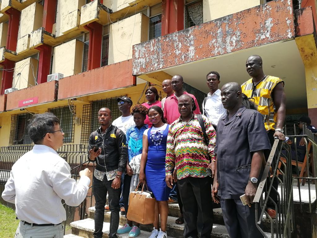 欢送会后,所有出席领导、志愿者教师以及夏令营全体学员在利比里亚大学教学楼前合影留念。