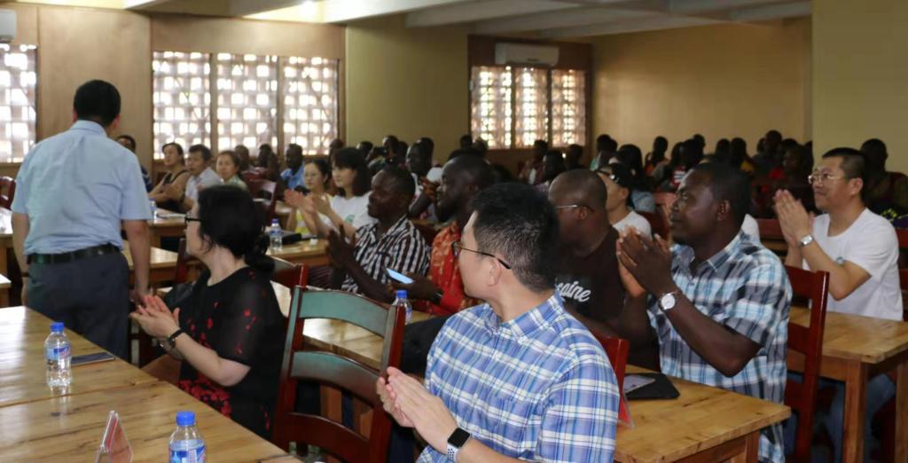 最后,利比里亚大学副校长吉贝上台致辞。他衷心地感谢潘教授的演讲。他表示近年来中利两国的关系越来越好。孔子学院在利比里亚的工作突出包括培养青少年在中资企业工作,培养出第一个本土汉语教师等,中国援建的利比里亚大学芬德校区已经成为当地科技、文化、教育的重要场所。他表示潘教授的讲座加倍深入两国人民之间的交流。