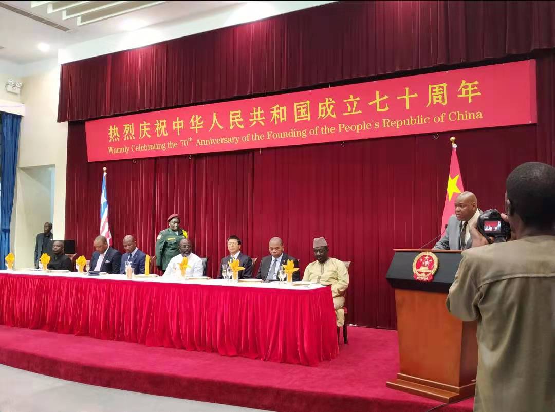 当地时间9月19日,中国驻利比里亚使馆在蒙罗维亚举办国庆招待会,庆祝中华人民共和国成立70周年。利总统维阿、众议长钱伯斯、临时参议长阿尔伯特·切、外交部长代理部长范布雷、国务部长麦吉尔、财政部长特韦等多位利政府内阁成员、议员、各界人士,各国驻利使节、国际组织代表等近300人出席。利比里亚大学孔子学院受邀参加。