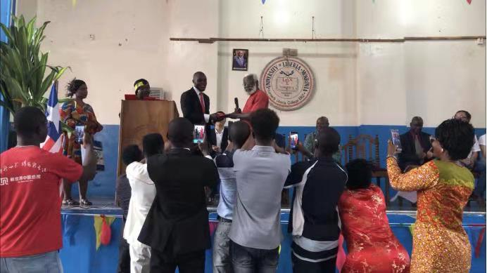 当地时间12月18日,利比里亚大学孔子学院学生结业典礼在利比里亚大学老校区举行。
