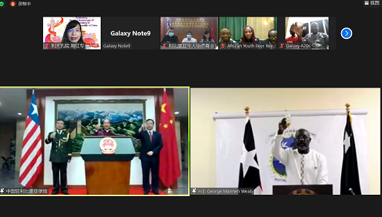 当地时间9月23日晚,中国驻利比里亚大使馆隆重举行国庆72周年视频招待会,利比里亚总统维阿等政要、各国驻利使节、在利各界友好人士、在利中资企业机构、华人华侨代表等出席了此次招待会。利比里亚大学孔子学院全体教师受邀出席,与各界人士一同庆祝中华人民共和国成立72周年。